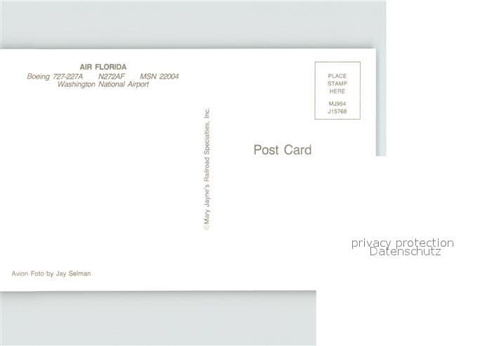 Flugzeuge Zivil Air Florida Boeing 727-227A N272AF MSN 22004 postalisch nicht gelaufen