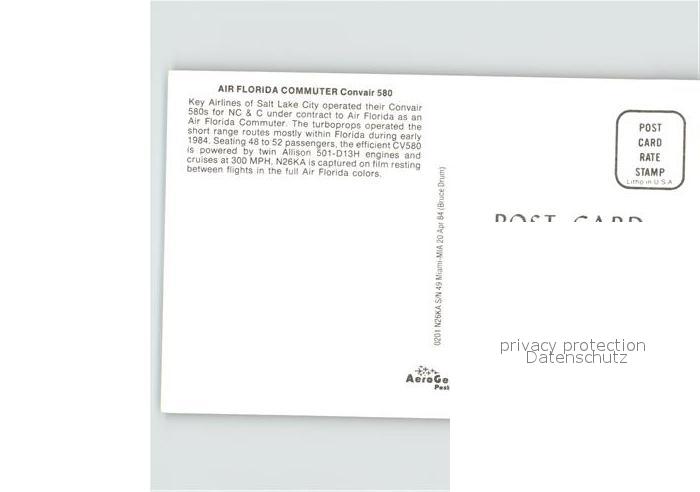 Flugzeuge Zivil Air Florida Commuter Convair 580 postalisch nicht gelaufen Erhaltung siehe scans