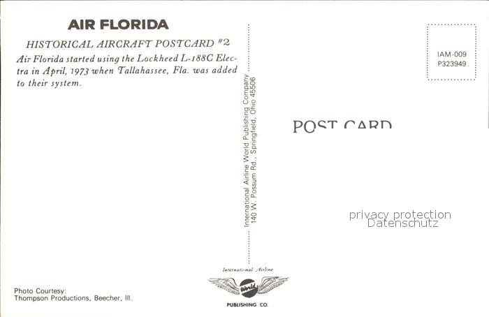 72274488 Flugzeuge Zivil AIR FLORIDA HISTORICAL AIRCRAFT POSTCARD#2 LOCKHEED L-188C ELECTRA KatCode 22120000001300