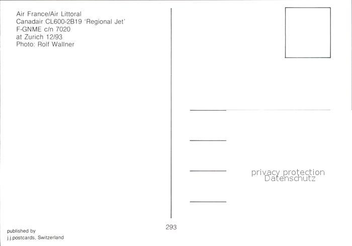 Flugzeuge Zivil Air France/Air Littoral Canadair CL600-2B19 Regional Jet F-GNME postalisch nicht gelaufen Erhaltung siehe scans