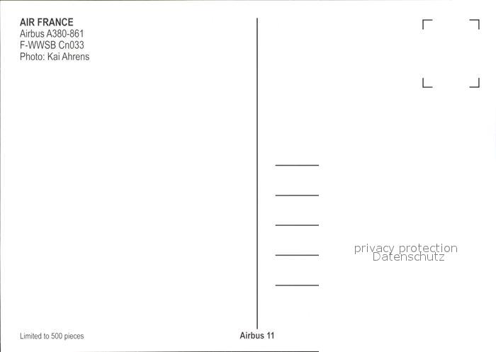 Flugzeuge Zivil Air France Airbus 380-861 F-WWSB Cn033 postalisch nicht gelaufen Erhaltung siehe scans
