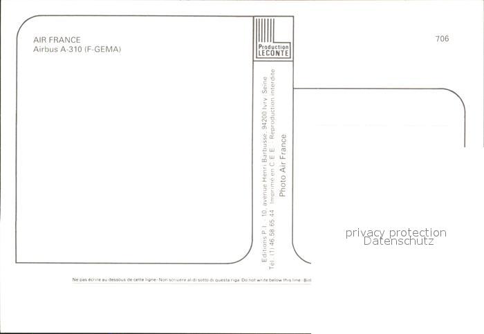 Flugzeuge Zivil Air France Airbus A-310 F-GEMA postalisch nicht gelaufen Erhaltung siehe scans