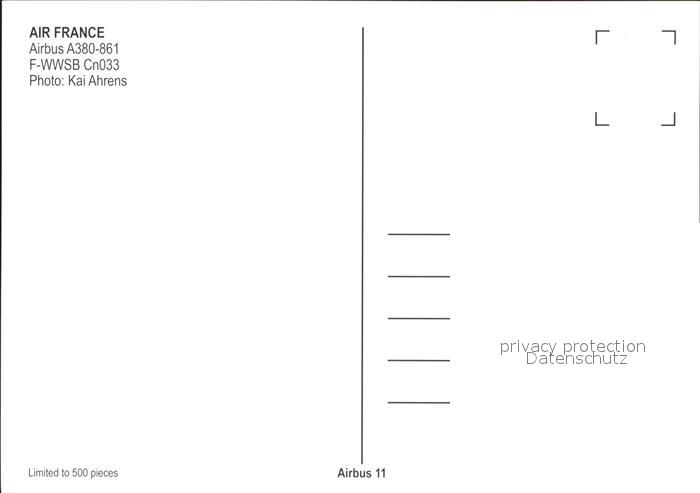Flugzeuge Zivil AIR FRANCE Airbus A380-861 F-WWSB Cn033 postalisch nicht gelaufen Erhaltung siehe scans