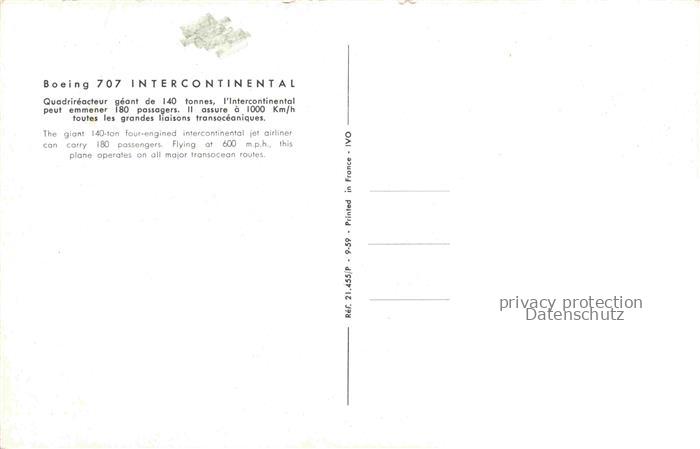 74064697 FLUGZEUGE ZIVIL Air France Boeing 707 Intercontinental postalisch nicht gelaufen Erhaltung siehe scans [IrynaD87] KatCode: 22120000001300
