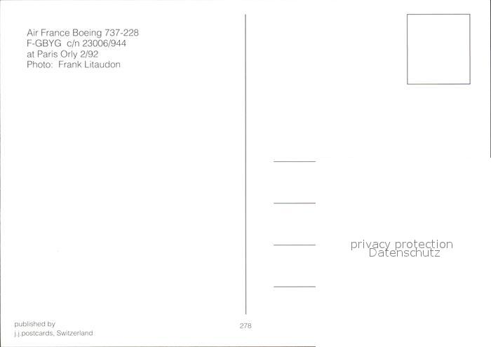 Flugzeuge Zivil Air France Boeing 737-228 F-GBYG c/n 23006/944 postalisch nicht gelaufen Erhaltung siehe scans