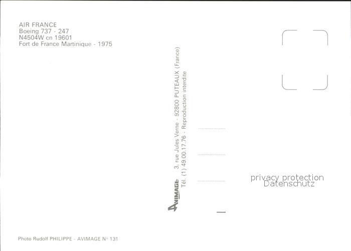 Flugzeuge Zivil Air France Boeing 737-247 N4504W cn 19601 postalisch nicht gelaufen Erhaltung siehe scans