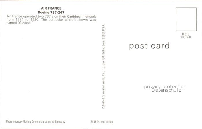Flugzeuge Zivil Air France Boeing 737-247 postalisch nicht gelaufen Erhaltung siehe scans