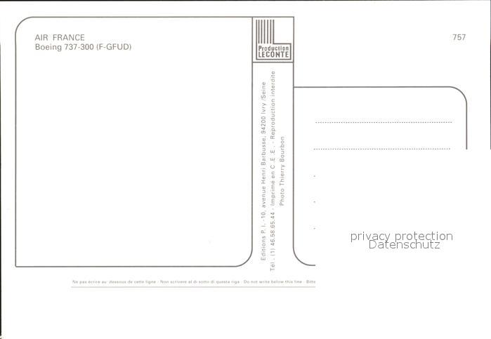 Flugzeuge Zivil Air France Boeing 737-300 F-GFUD postalisch nicht gelaufen Erhaltung siehe scans