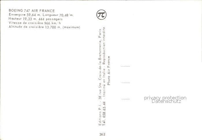 Flugzeuge Zivil Air France Boeing 747 postalisch nicht gelaufen Erhaltung siehe scans