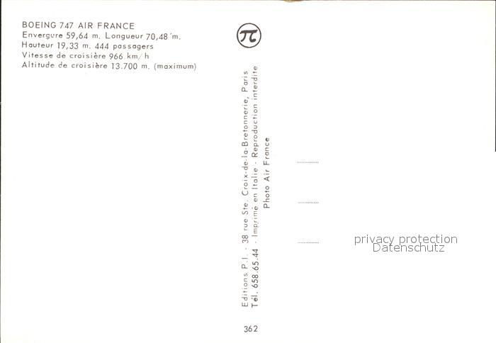 Flugzeuge Zivil Air France Boeing 747 postalisch nicht gelaufen Erhaltung siehe scans