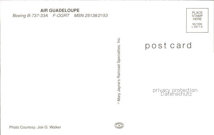 Flugzeuge Zivil Air Guadeloupe Boeing B-737-33A F-OGRT MSN 25138/2153 postalisch nicht gelaufen Erhaltung siehe scans