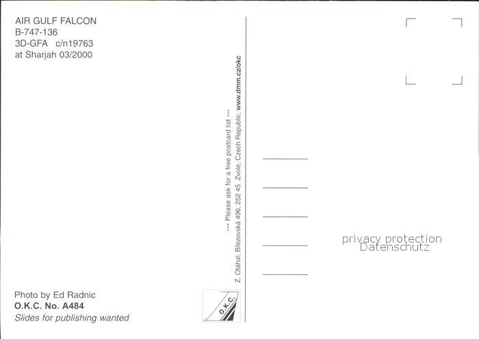 Flugzeuge Zivil Air Gulf Falcon B-747-136 3D-GFA c/n 19763 postalisch nicht gelaufen Erhaltung siehe scans