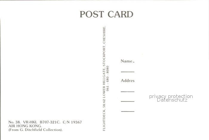 Flugzeuge Zivil Air Hong Kong B-707-321C VR-HKL C/N 19367 postalisch nicht gelaufen Erhaltung siehe scans