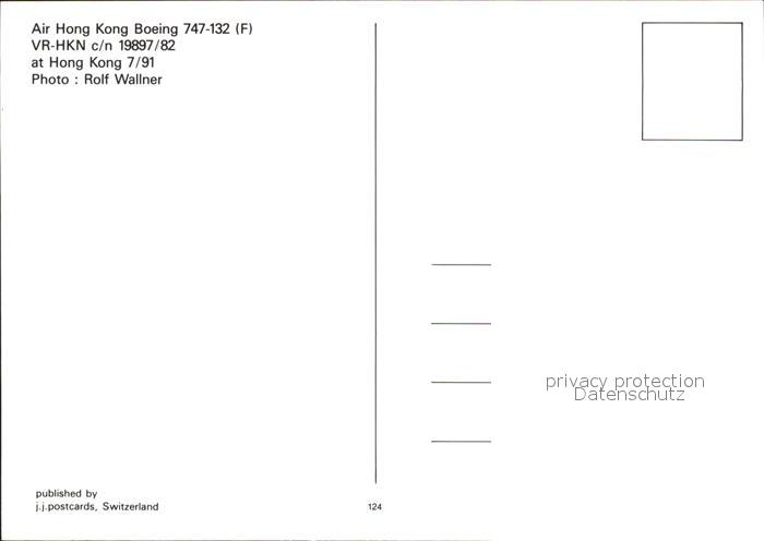 Flugzeuge Zivil Air Hong Kong Boeing 747-132 F VR-HKN c/n 19897/82 postalisch nicht gelaufen Erhaltung siehe scans
