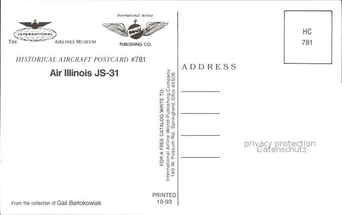 Flugzeuge Zivil Air Illinois JS-31 postalisch nicht gelaufen Erhaltung siehe scans