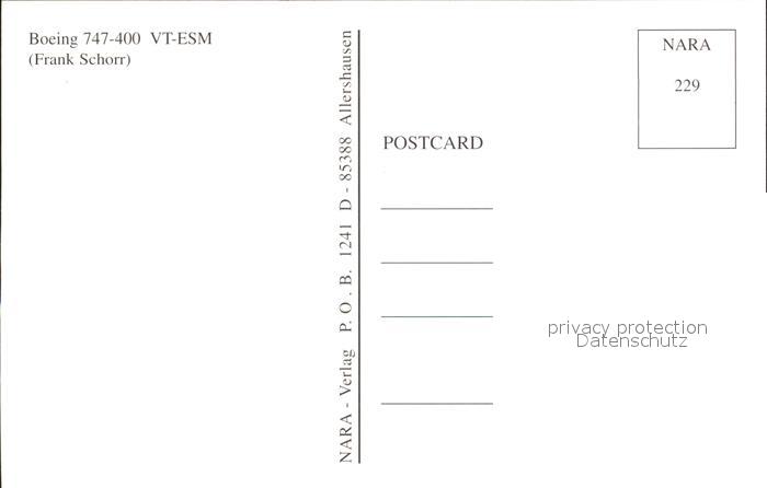 Flugzeuge Zivil Air India Boeing 747-400 VT-ESM postalisch nicht gelaufen Erhaltung siehe scans