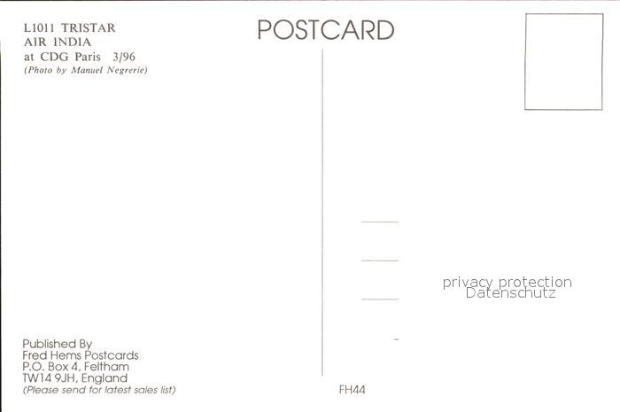 Flugzeuge Zivil Air India L1011 Tristar postalisch nicht gelaufen Erhaltung siehe scans