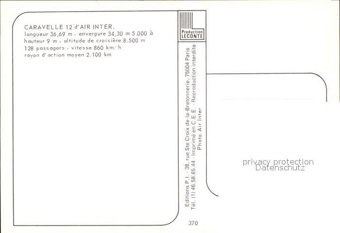Flugzeuge Zivil Air Inter Caravelle 12 postalisch nicht gelaufen Erhaltung siehe scans