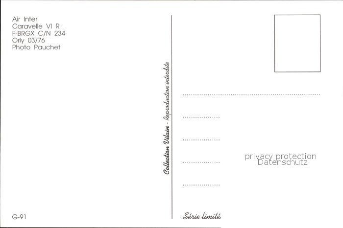 Flugzeuge Zivil Air Inter Caravelle VI R F-BRGX c/n 234 postalisch nicht gelaufen Erhaltung siehe scans