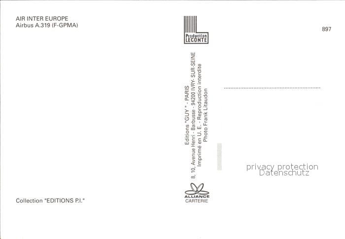 Flugzeuge Zivil Air Inter Europe Airbus A-319 F-GPMA postalisch nicht gelaufen Erhaltung siehe scans
