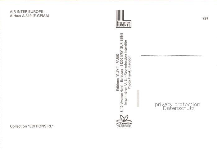 Flugzeuge Zivil Air Inter Europe Airbus A.319 F-GPMA postalisch nicht gelaufen Erhaltung siehe scans
