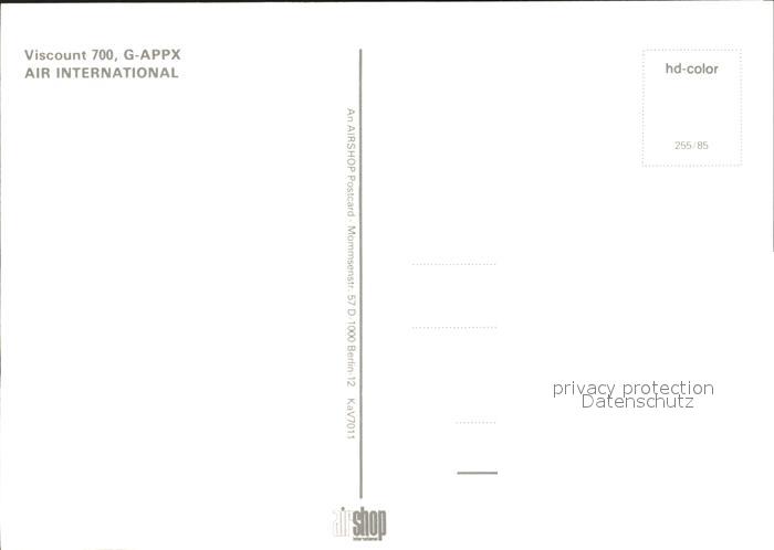 Flugzeuge Zivil Air International Viscount 700 G-APPX postalisch nicht gelaufen Erhaltung siehe scans