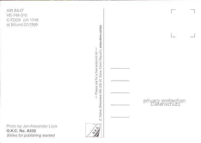 Flugzeuge Zivil Air Inuit HS-748-310 C-FDOX c/n 1749 postalisch nicht gelaufen Erhaltung siehe scans