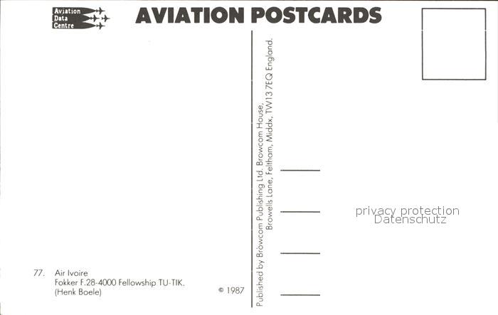 Flugzeuge Zivil Air Ivoire Fokker F-28-4000 Fellowship TU-TIK postalisch nicht gelaufen Erhaltung siehe scans