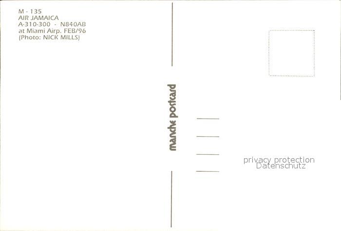 Flugzeuge Zivil Air Jamaica A-310-300 N840AB postalisch nicht gelaufen Erhaltung siehe scans