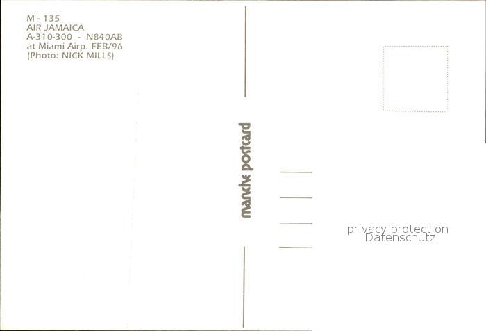 Flugzeuge Zivil Air Jamaica A-310-300 N840AB postalisch nicht gelaufen Erhaltung siehe scans
