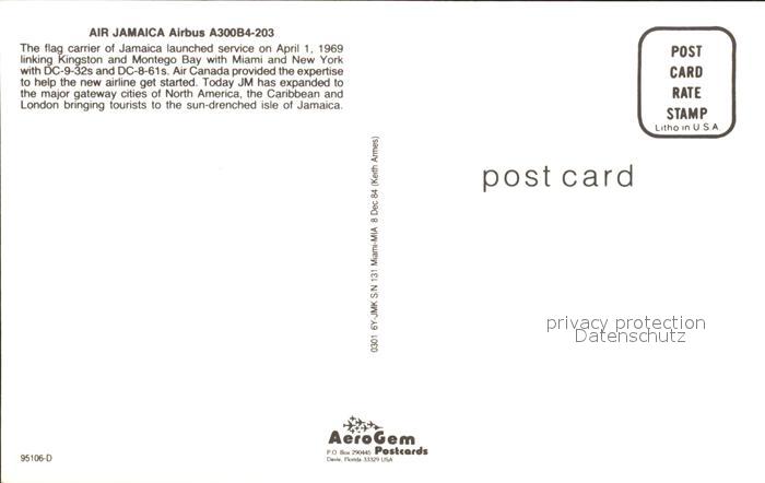 Flugzeuge Zivil Air Jamaica A300B4-204 6Y-JMX postalisch nicht gelaufen Erhaltung siehe scans