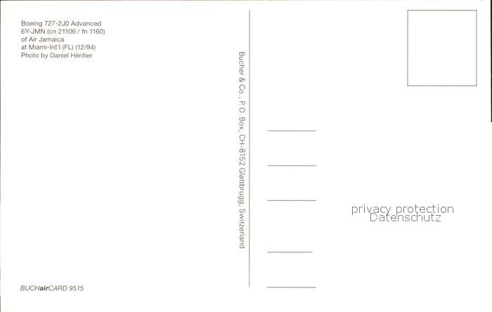Flugzeuge Zivil Air Jamaica Boeing 727-2JO Advanced 6Y-JMN cn 21106/fn 1160 postalisch nicht gelaufen Erhaltung siehe scans