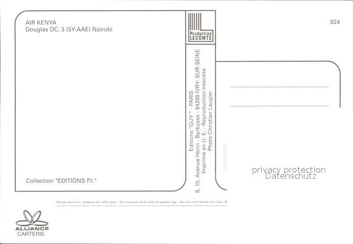 Flugzeuge Zivil Air Kenya Douglas DC-3 5Y-AAE postalisch nicht gelaufen Erhaltung siehe scans
