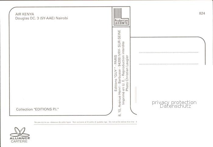 Flugzeuge Zivil Air Kenya Douglas DC-3 5Y-AAE postalisch nicht gelaufen Erhaltung siehe scans