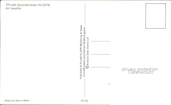 Flugzeuge Zivil Air Lesotho 7P-LAH Fairchild-Hiller FH-227 B postalisch nicht gelaufen Erhaltung siehe scans