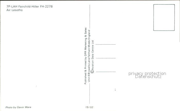 Flugzeuge Zivil Air Lesotho 7P-LAH Fairchild Hiller FH-227B postalisch nicht gelaufen Erhaltung siehe scans