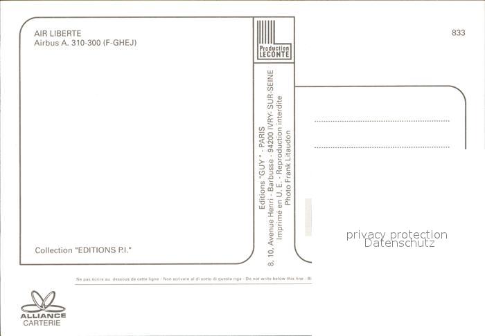 Flugzeuge Zivil Air Liberte A.310-300 F-GHEJ postalisch nicht gelaufen Erhaltung siehe scans
