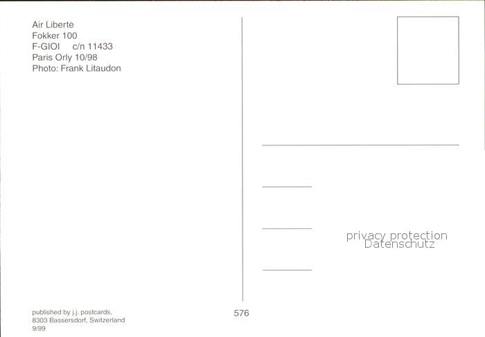 Flugzeuge Zivil Air Liberte Fokker 100 F-GIOI c/n 11433 postalisch nicht gelaufen Erhaltung siehe scans