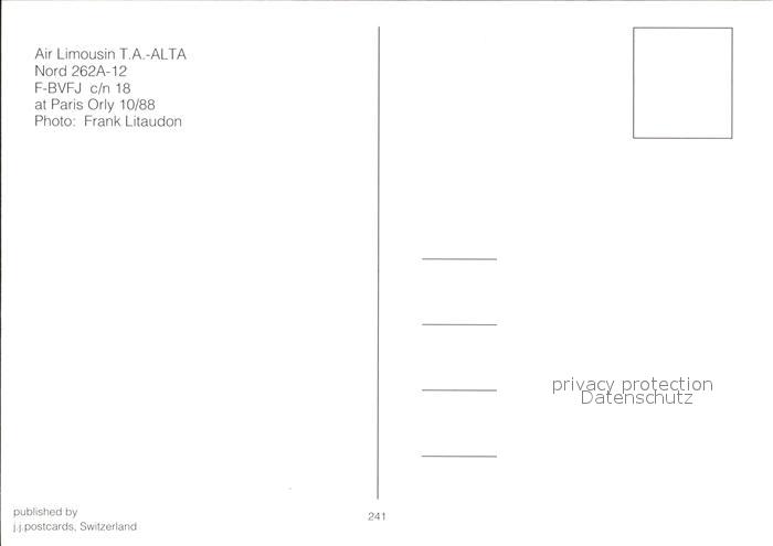 Flugzeuge Zivil Air Limousin T.A.-ALTA Nord 262A-12 F-BVFJ c/n 18 postalisch nicht gelaufen Erhaltung siehe scans