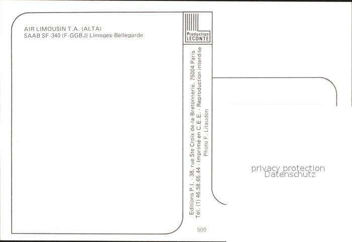 Flugzeuge Zivil AIR LIMOUSIN T.A. (ALTA) SAAB SF-340 (F-GGBJ) Limoges-Bellegarde postalisch nicht gelaufen Erhaltung siehe scans