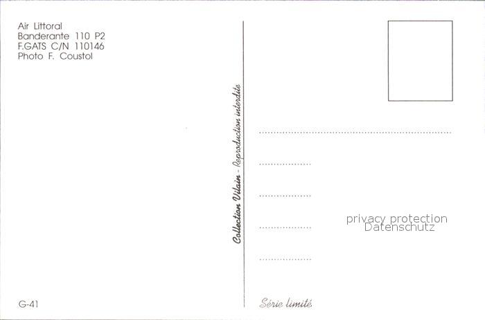 Flugzeuge Zivil Air Littoral Banderante 110 P2 F-GATS C/N 110146 postalisch nicht gelaufen Erhaltung siehe scans