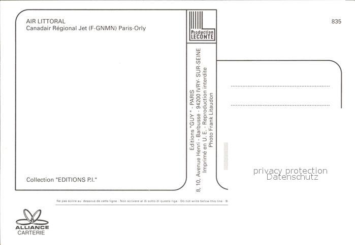 Flugzeuge Zivil Air Littoral Canadair Regional Jet F-GNMN postalisch nicht gelaufen Erhaltung siehe scans