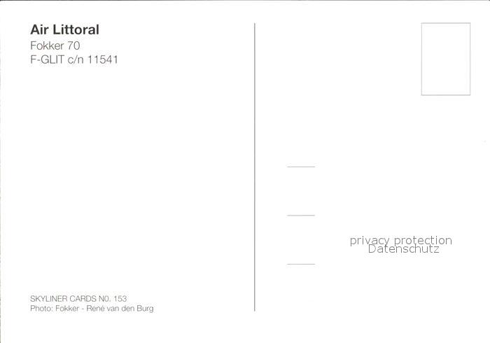 Flugzeuge Zivil Air Littoral Fokker 70 F-GLIT c/n 11541 postalisch nicht gelaufen Erhaltung siehe scans