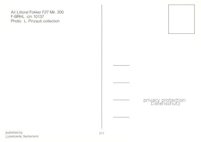 Flugzeuge Zivil Air Littoral Fokker F27 Mk. 200 F-BRHL c/n 10137 postalisch nicht gelaufen Erhaltung siehe scans [PaolaD17]