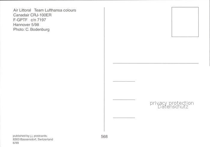 Flugzeuge Zivil Air Littoral Team Lufthansa colours Canadair CRJ-100ER F-GPTF postalisch nicht gelaufen Erhaltung siehe scans