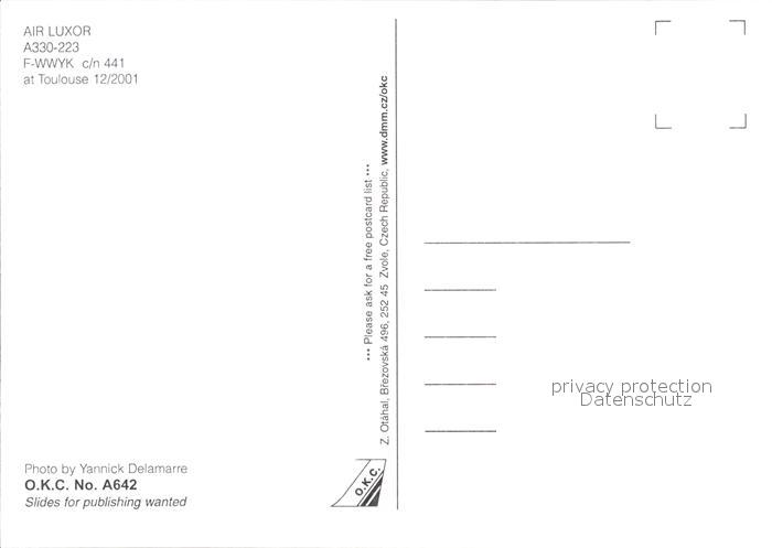 Flugzeuge Zivil Air Luxor A330-223 F-WWYK c/n 441 postalisch nicht gelaufen Erhaltung siehe scans