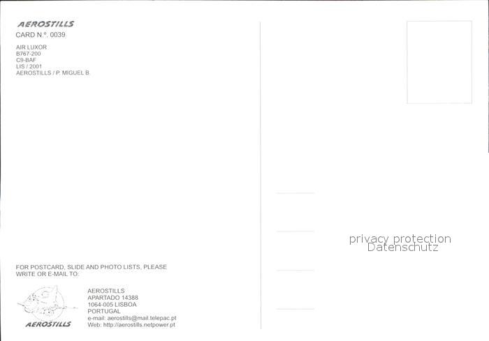 Flugzeuge Zivil Air Luxor B767-200 C9-BAF postalisch nicht gelaufen Erhaltung siehe scans