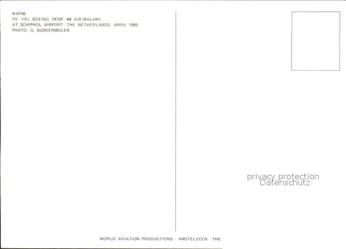 Flugzeuge Zivil Air Malawi Boeing 747SP-44 70-YKL postalisch nicht gelaufen Erhaltung siehe scans