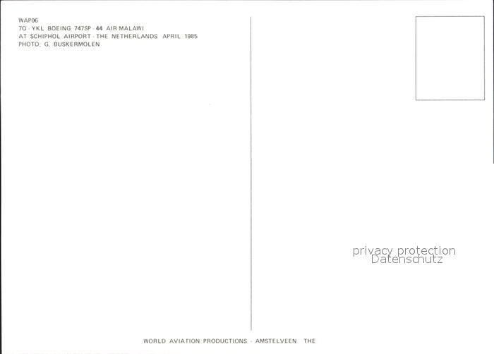 Flugzeuge Zivil Air Malawi Boeing 747SP-44 7Q-YKL postalisch nicht gelaufen Erhaltung siehe scans