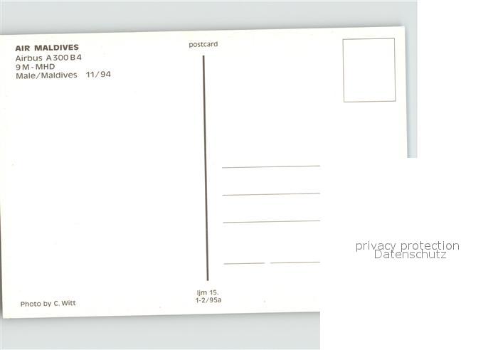 Flugzeuge Zivil Air Maldives Airbus A 300 B4 9M-MHD postalisch nicht gelaufen Erhaltung siehe scans